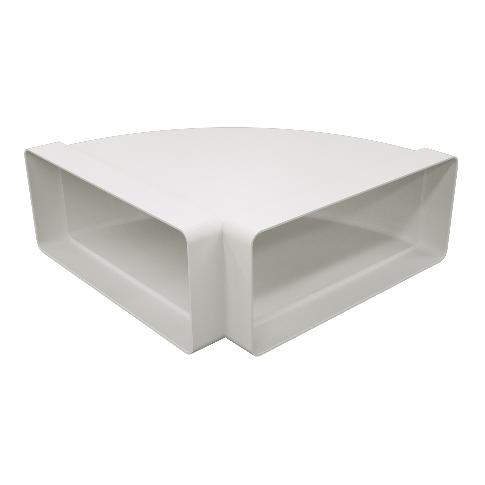 Ideal for rangehoods ventilation with minimal space, the low-profile rectangular duct connector will connect to a channel duct and re-directs air at a 90° angle.