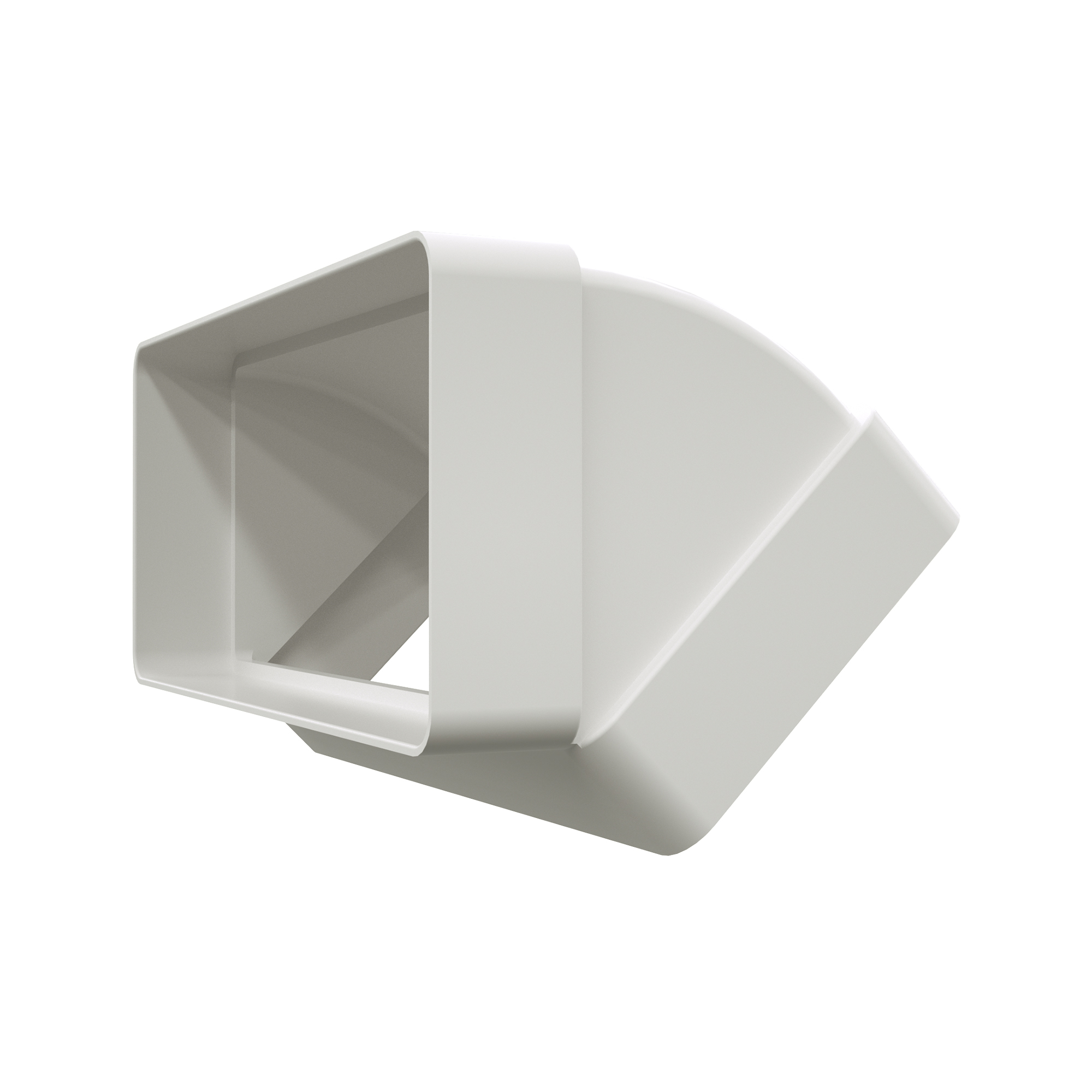 Ideal for rangehoods ventilation with minimal space, the low-profile rectangular duct connector will connect to a channel duct and re-directs air at a 45° angle.